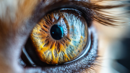 Close up of a squirrel s eye with rich amber hues showcasing intricate details and textures, emphasizing nature s beauty and wildlife photography