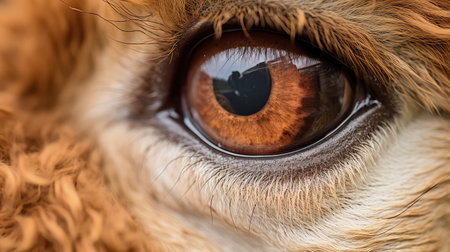 A stunning macro shot captures a world within a world. The detailed eye of an alpaca holds a vivid reflection of a majestic mountain range, symbolizing a deep connection with nature, dreams of adventure, and a unique perspective on the world.