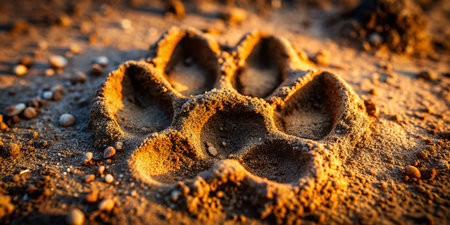 A dog paw print on a dirt road at sunset, capturing the essence of nature, outdoor adventure, and the beauty of animal tracks in the wild.