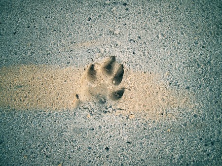 Dog paw print showing claw marks in the sand of a beach along the atlantic ocean