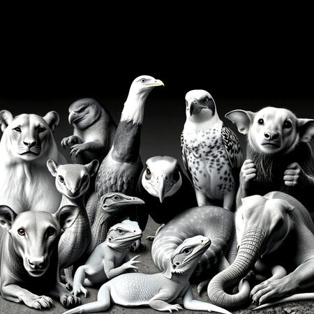 Combination of six black and white photos of animals. nature and wildlife concept digitally generated image.