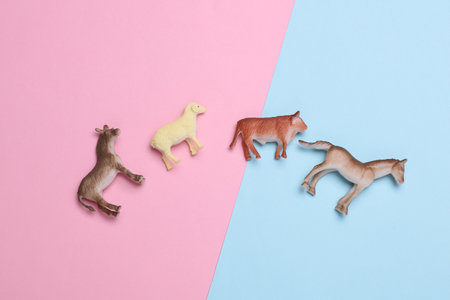 White toy rhinoceros under spotlight with animals at background, voting concept