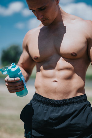 Another sip. Handsome Man Drinking Fresh Water From bottle. Morning routine. Daily intake of water. Thirsty male model enjoying refreshing drink. Healthy eating and drink. Drinking water