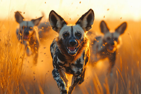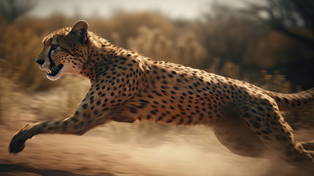 Illustration of a cheetah stalking its prey with its flock, wildlife