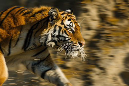 A dynamic photograph capturing the intense energy of a tiger in mid-pounce