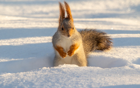 squirrel common in the snow on a sunny day wild animals, mammals, forest, wildlife