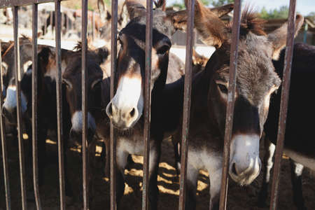 Cute donkeys at the cattle farm