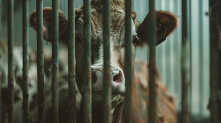 A fascinating close-up shows curious cows peering through a wooden fence in a barn, highlighting the charm and essence of farm life.