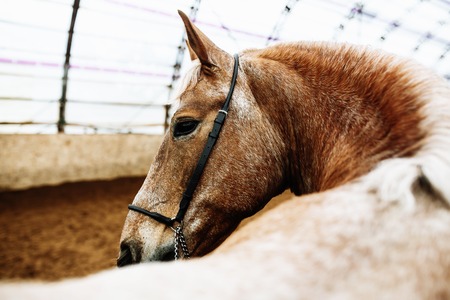 Portrait of a horse in the stable, close-up.