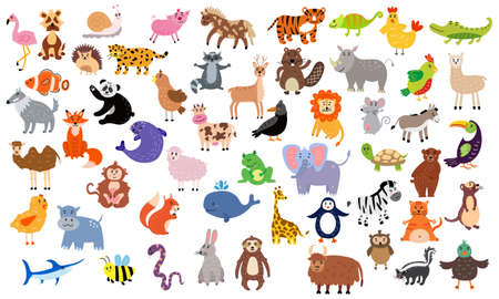 Large set of cute animals. Nursery characters for children's design. vector illustration