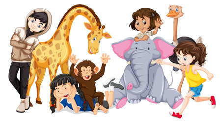 Animals and happy people illustration