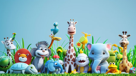 A vibrant lineup of toy animals, including a lion, zebra, and rabbit, creates a fun and educational visual for children's themes and decor ideas.