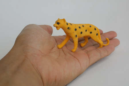 a plastic toy tiger that looks aggressive