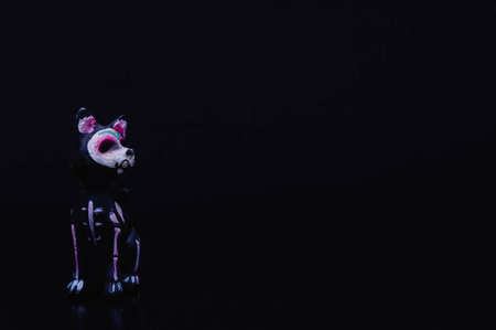Dog figurine on a black background with copy space. Halloween concept.