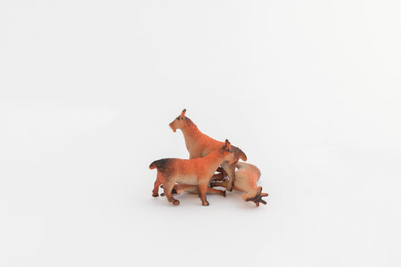 brown goat plastic animal toy on white background