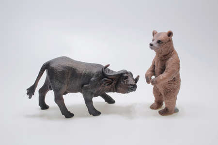 the Bear and bull figurines facing each other