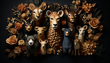 A vibrant collection of animal sculptures, showcasing a range of creatures in a unique artistic style.