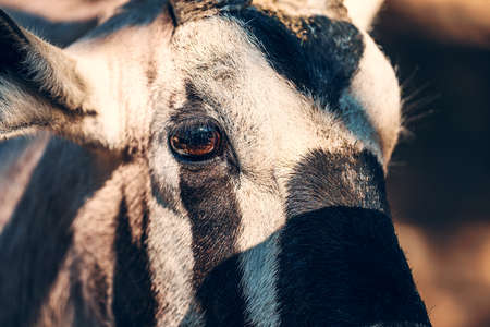 Gemsbok antelope or Oryx Gazella, close up on animal eyes.
