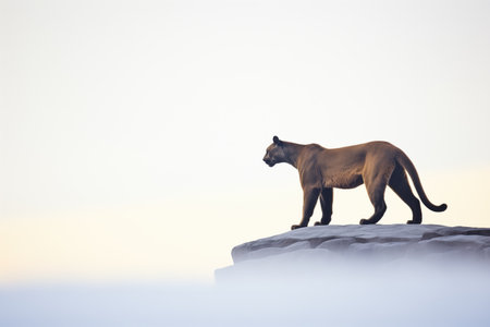 silhouette of a cougar on a rock, watching a distant herd