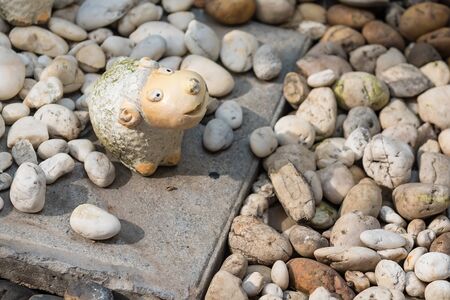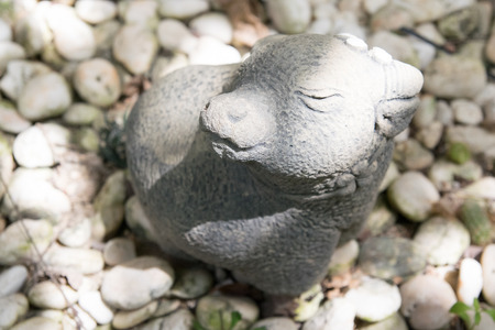 close up cute Thai buffalo cement doll in garden