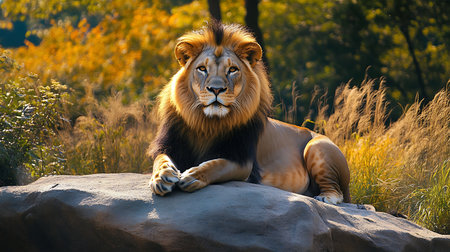 A proud lion relaxes in its natural habitat showcasing the beauty of wildlife and nature.
