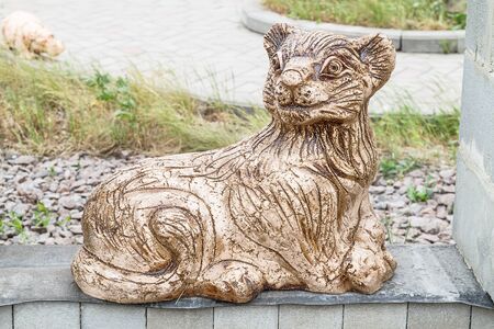 Ceramic sculpture of young lion with glaze