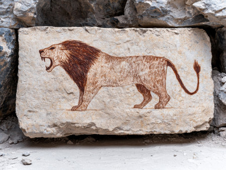Carved stone relief of a roaring lion