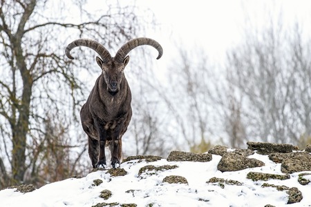 majestic animal old and wise alpine capricorn Steinbock Capra ibex in the swiss alps brienzer rothorn