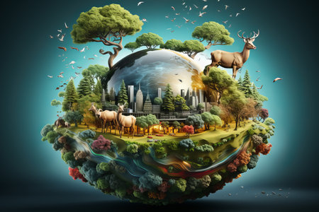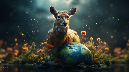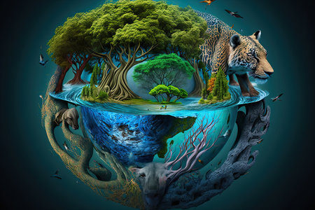 An eye catching illustration of Earth Day or World Wildlife Day concept, Save our planet, protect green nature. Created using Generative AI tools.