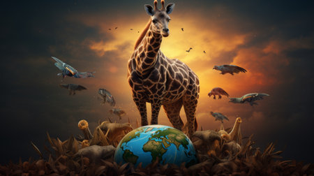 Wildlife animal and earth. World Animal Day concept