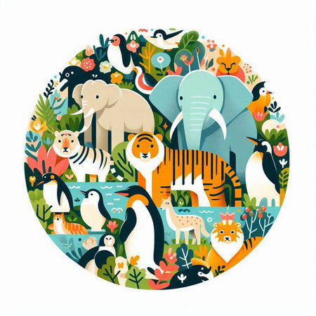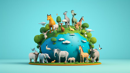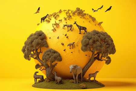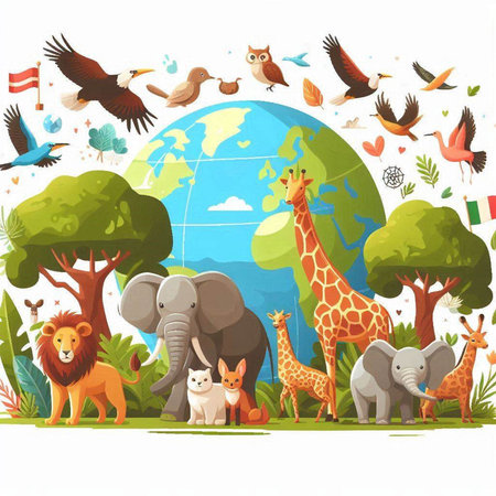 An eye catching illustration of World Wildlife Day with the animals, Earth Day concept. Created using Generative AI tools.