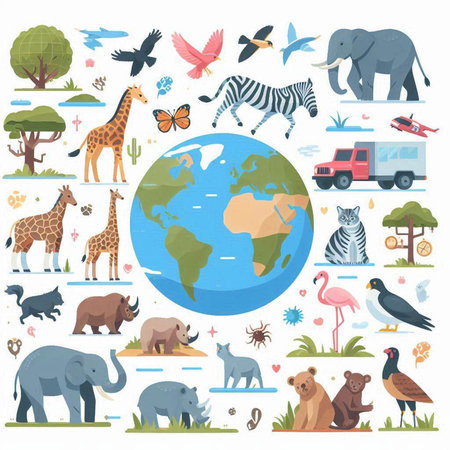 Vector illustration of World Wildlife Day. Animals, birds and plants.