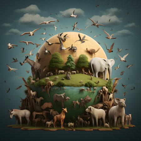 Colorful paper cut out illustration of the Earth surrounded by diverse animals and plants, symbolizing nature conservation and biodiversity