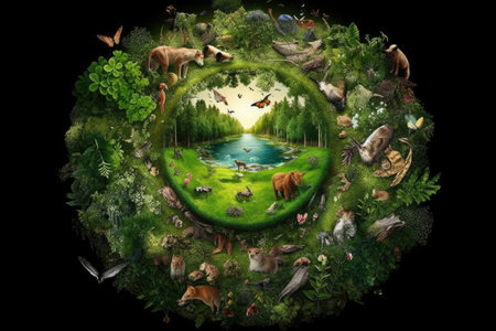 the earth is surrounded by animals and plants