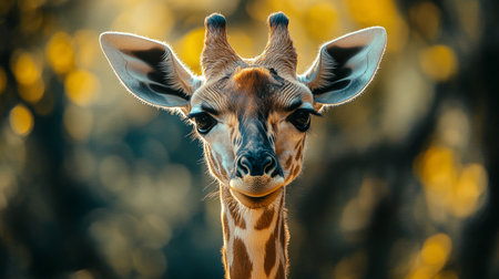 The elegant giraffe, with its spotted pattern, looks at camera generated by artificial intelligence