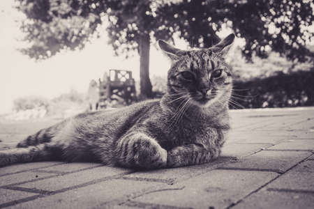 Limassol Cyprus May 01, 2020 View of domestic cat living in the streets of Limassol in Cyprus island