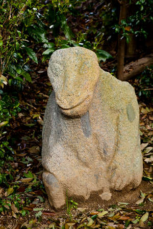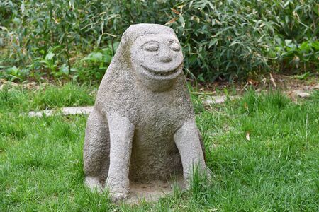 Ancient stone lion sculpture near Tomb of King Wanggon the founder of the Koryo dynasty. Construction on the tomb start in 943. North Korea. Haesong-ri, Kaepung, Kaesong