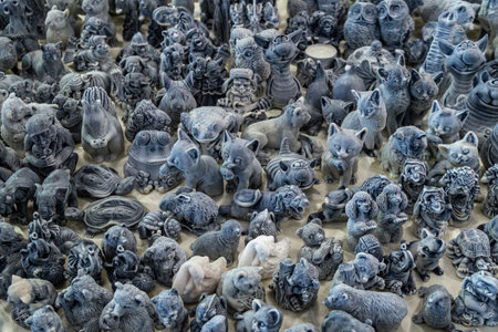 A set of hand-carved stone figurines, each depicting a different mythical creature.