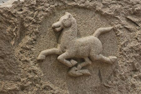 Stone Carving of an Antelope Ancient Petroglyph on Rock in Nature