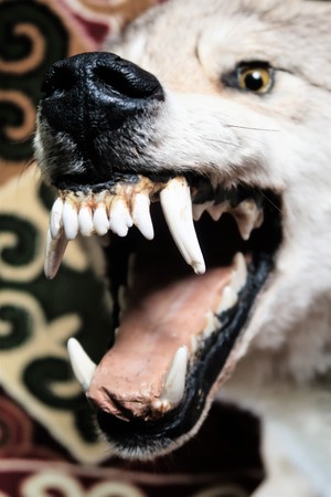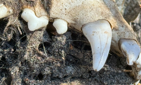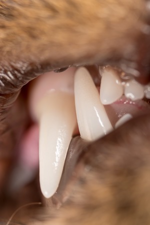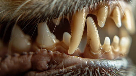 Macro shot showcasing detail and texture of animal fangs and teeth