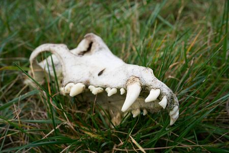 Skull of a Wolf on a meadow at the river Elbe near Magdeburg in Germany
