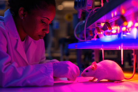 Research Scientist Conducting Mouse Experiment in Lab