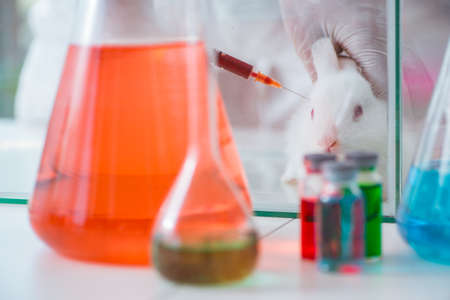 White rabbit in scientific lab experiment