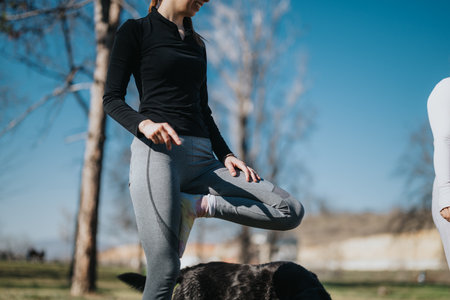 Woman Practicing Yoga Pose Outdoors in Park on a Clear Day