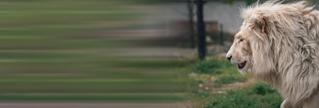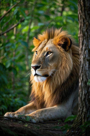 Beautiful mature lion lying down during the day