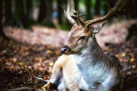 deer stag portrait on autumn background in the forest