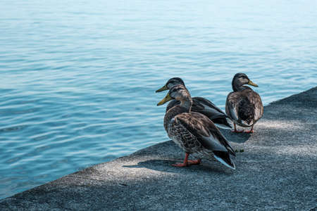 Ducks playing in the water in a nice day