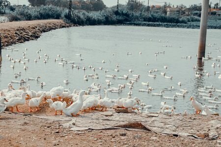 Duck farm, a traditional local livelihood of the Vietnamese people in Hue, Vietnam showing local culture and tradition