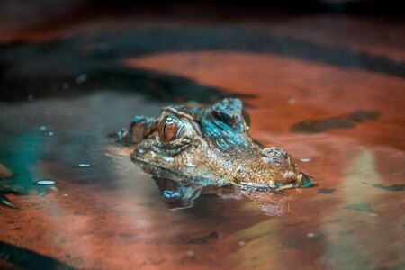 Alligator peaking its head out of the water at the John Ball Zoo