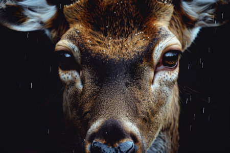 A deer with brown fur and white spots is staring at the camera. The image has a moody and mysterious feel to it, as if the deer is looking directly into the viewer's soul